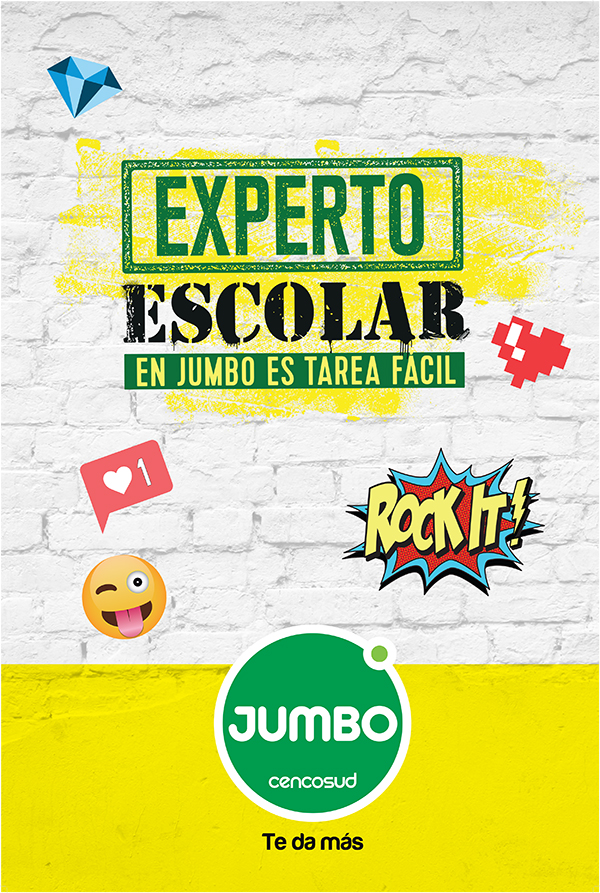 Jumbo P.O.P. Gráficas de Jumbo, para Siete Comunicaciones SPA. Pendón de Escolares Jumbo con Denise Rosenthal Flyer para Escolares Jumbo Recetario Infantil para Día de la Madre Pendón Heladería Jumbo